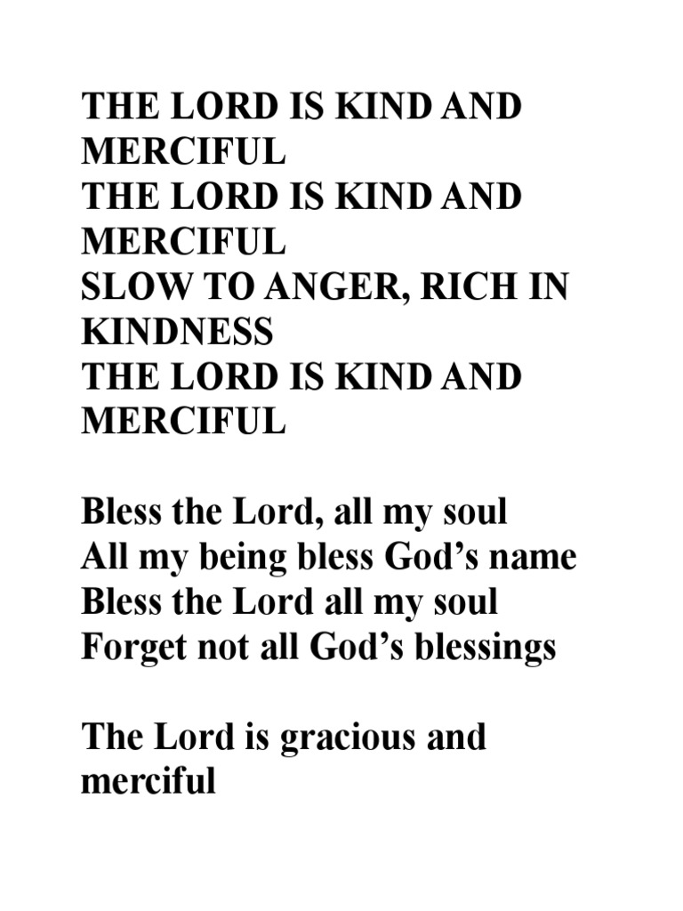 Lyrics The Lord Is Kind And Merciful Cotter Pdf Theology Religious Belief And Doctrine